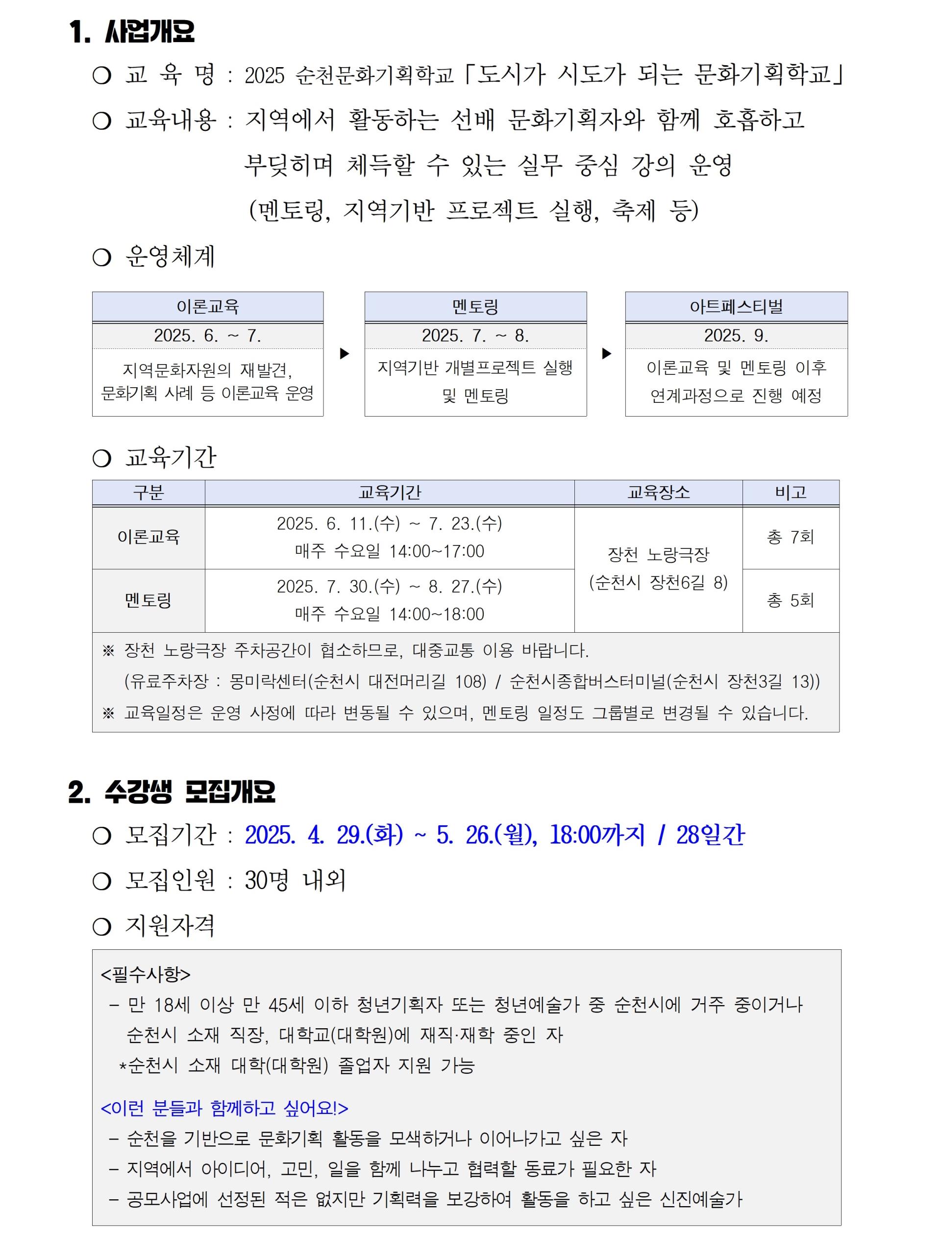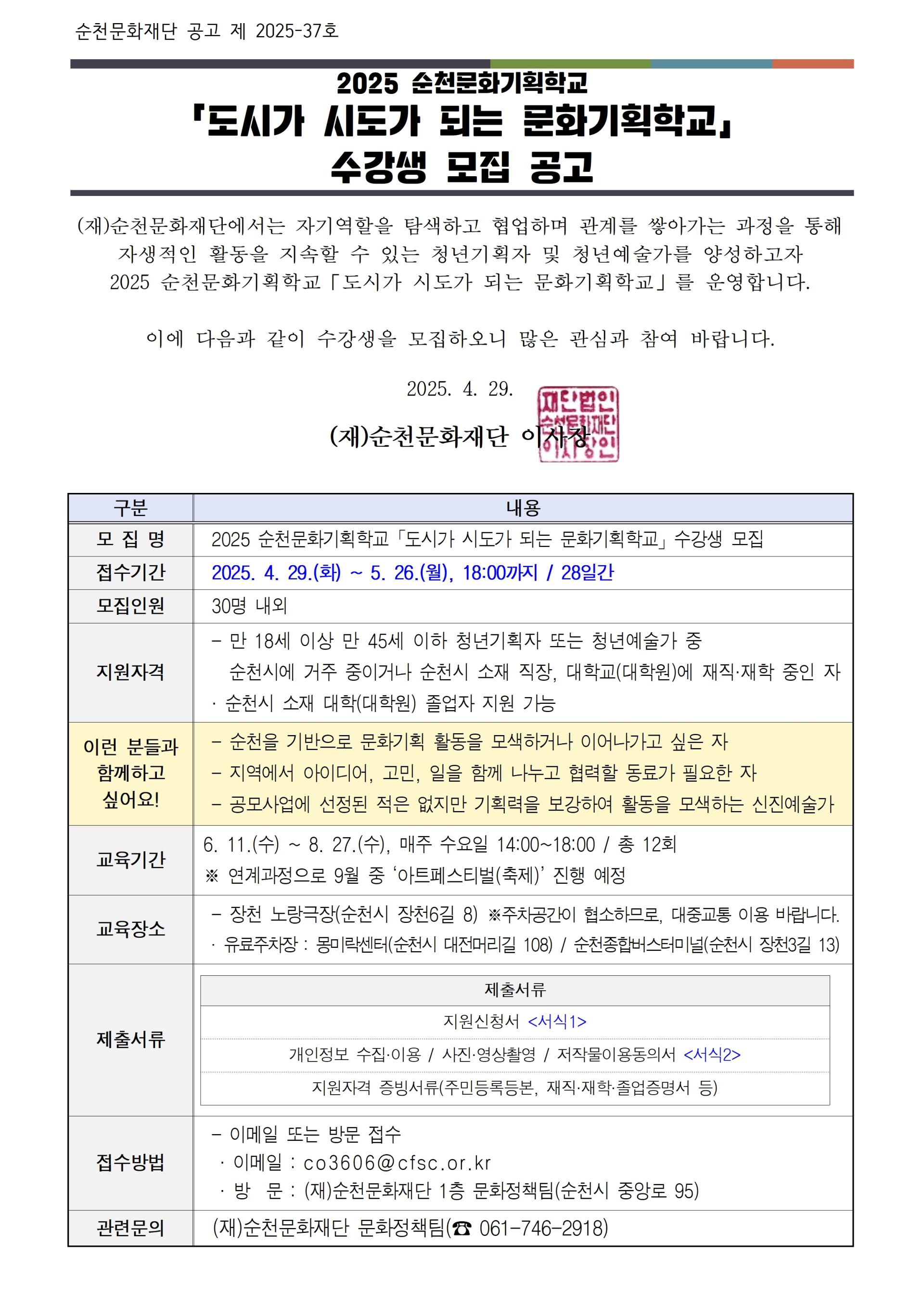 2025 순천문화기획학교 「도시가 시도가 되는 문화기획학교」 수강생 모집 공고(마감)