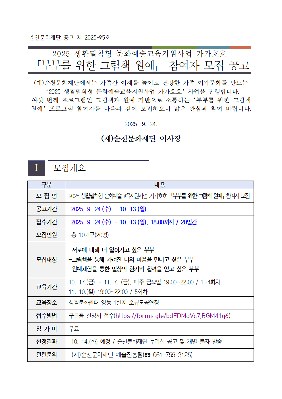 2025 생활밀착형 문화예술교육지원사업 '가가호호' 「부부를 위한 그림책 원예」참여자 모집 공고