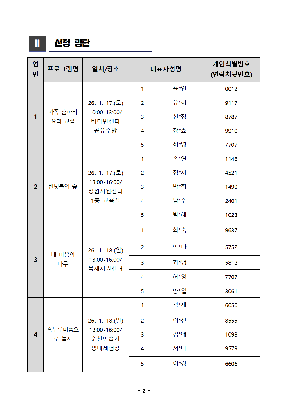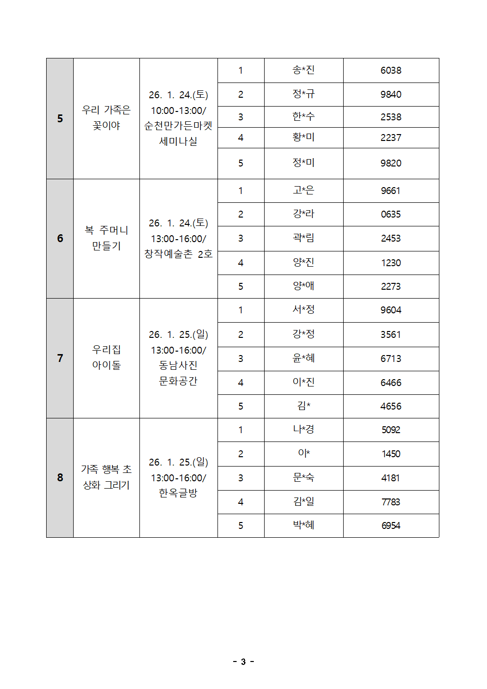 생활밀착형 문화예술교육지원사업 가가호호 「가가호호 겨울방학」 참여가족 선정 결과 공고