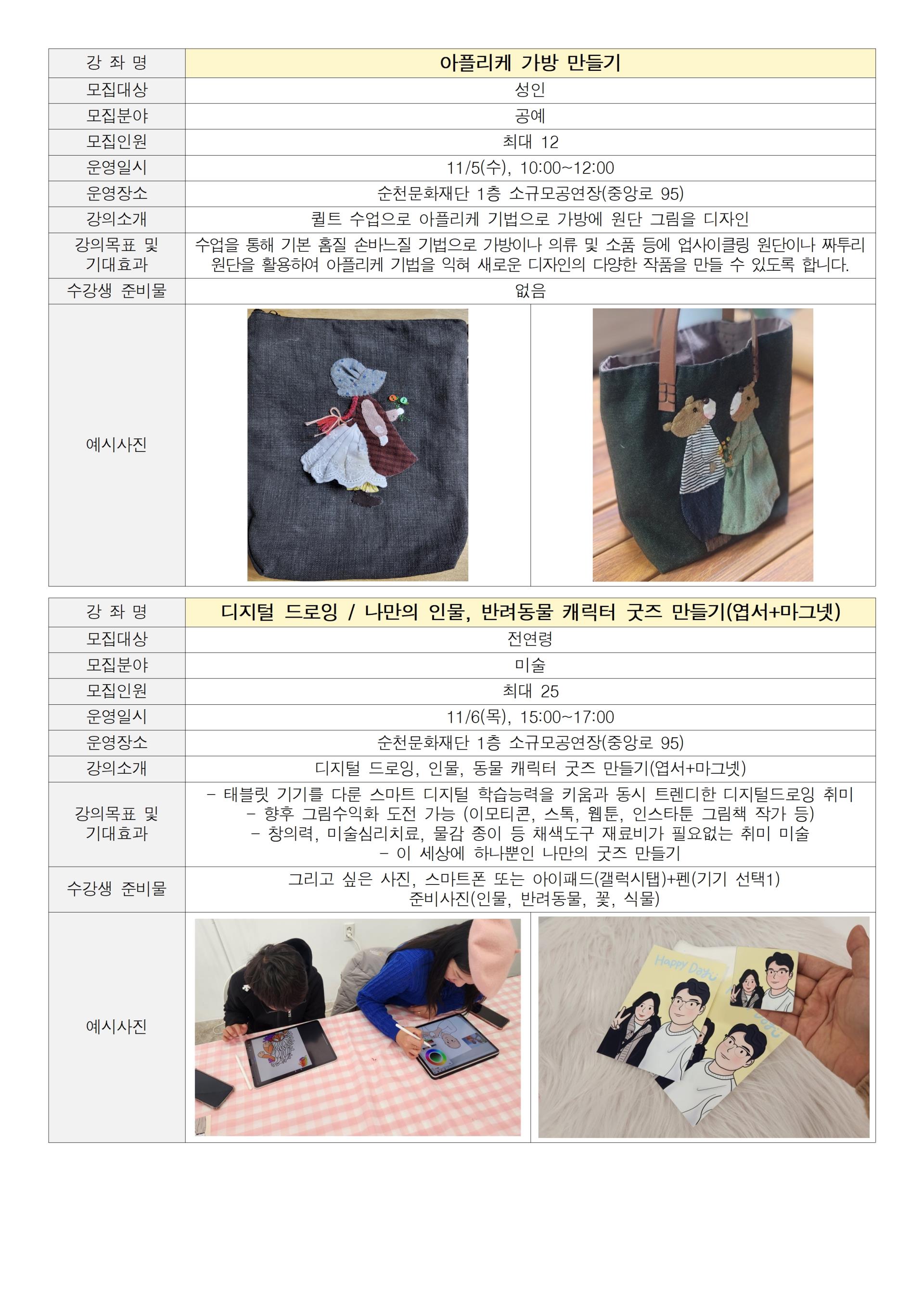 ★ 현재 "4. 디지털 드로잉 (엽서+마그넷)" 1명 수강 취소로, 1명 더 신청 가능합니다.