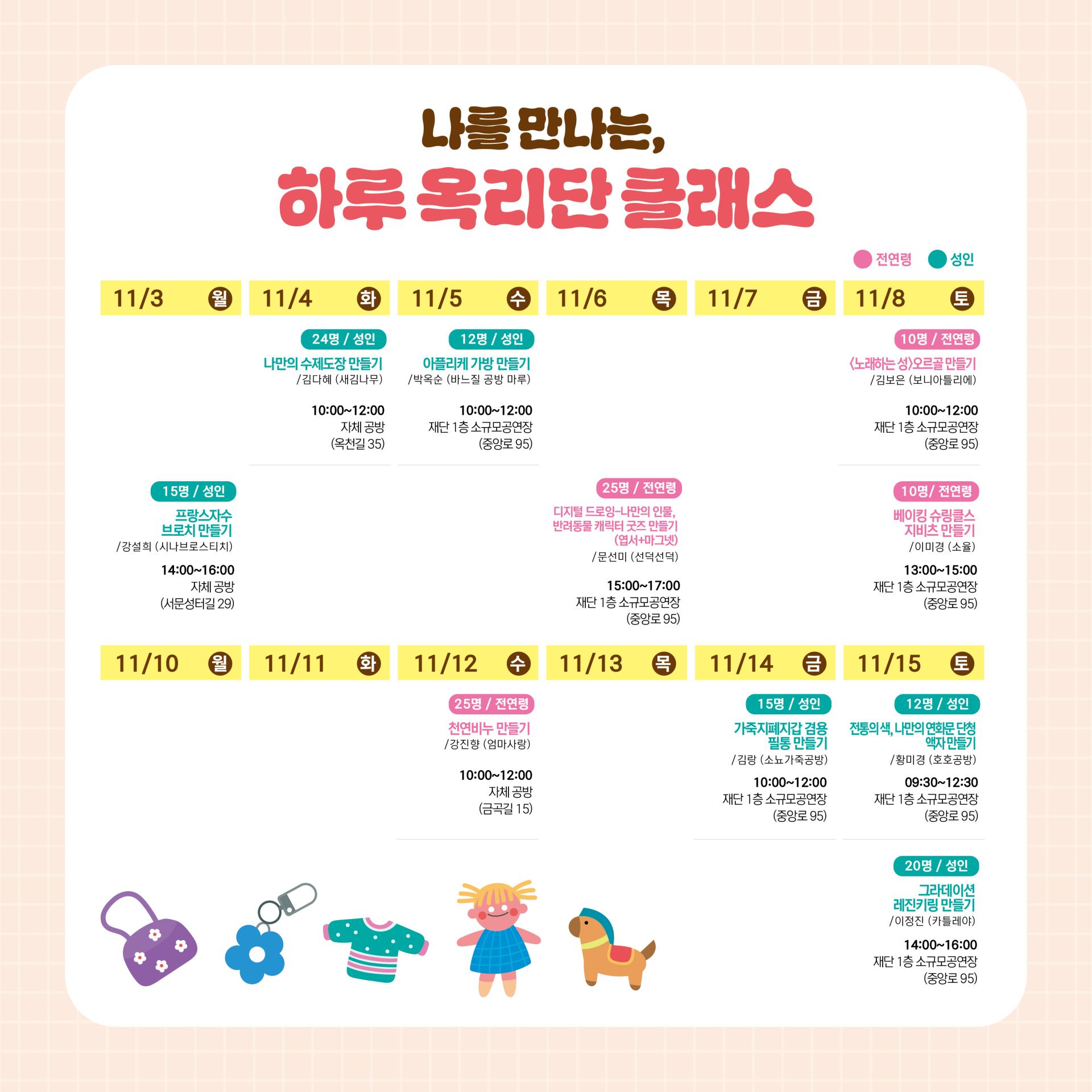 옥리단길 문화의거리 공방과 함께하는 만날강좌 원데이클래스!
