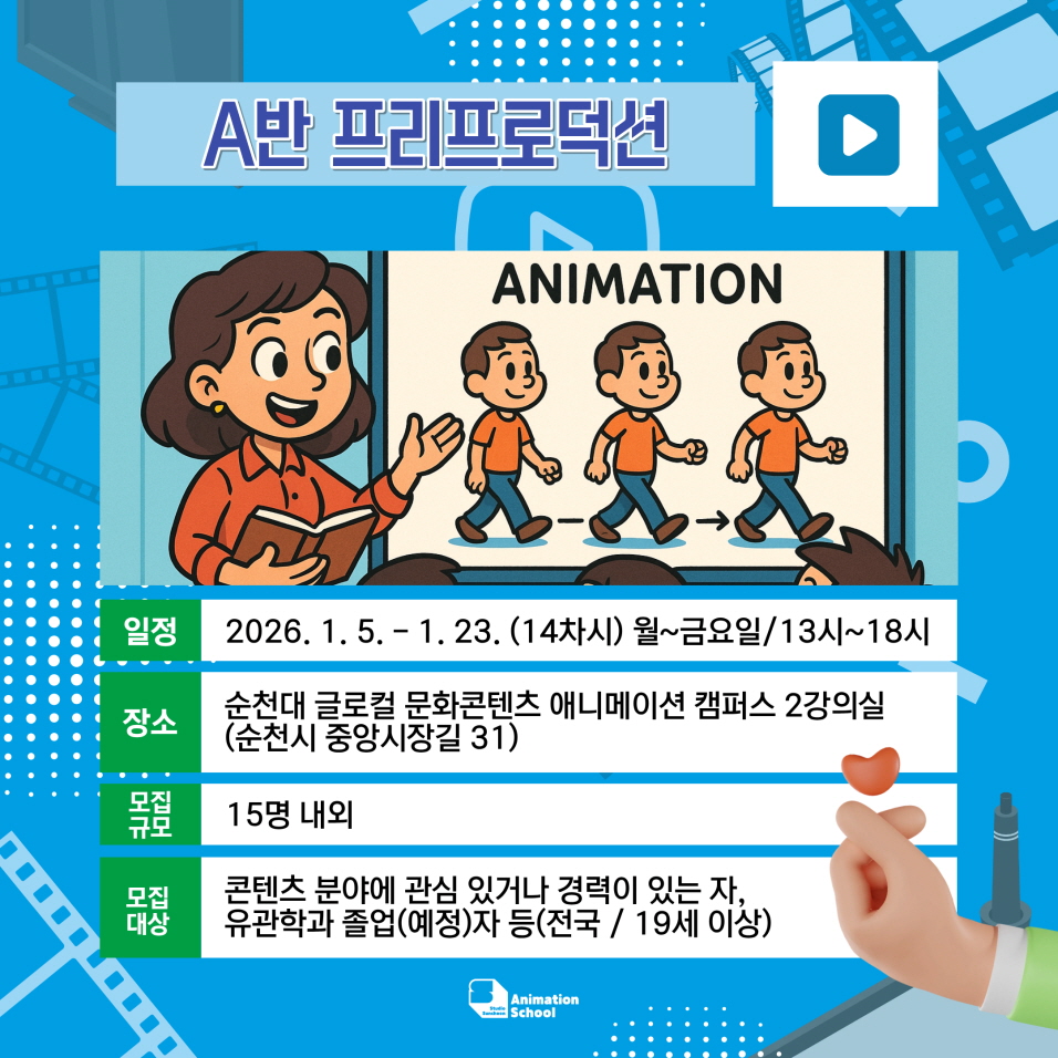 스튜디오 순천 애니스쿨에서 1기 교육생을 모집합니다!
