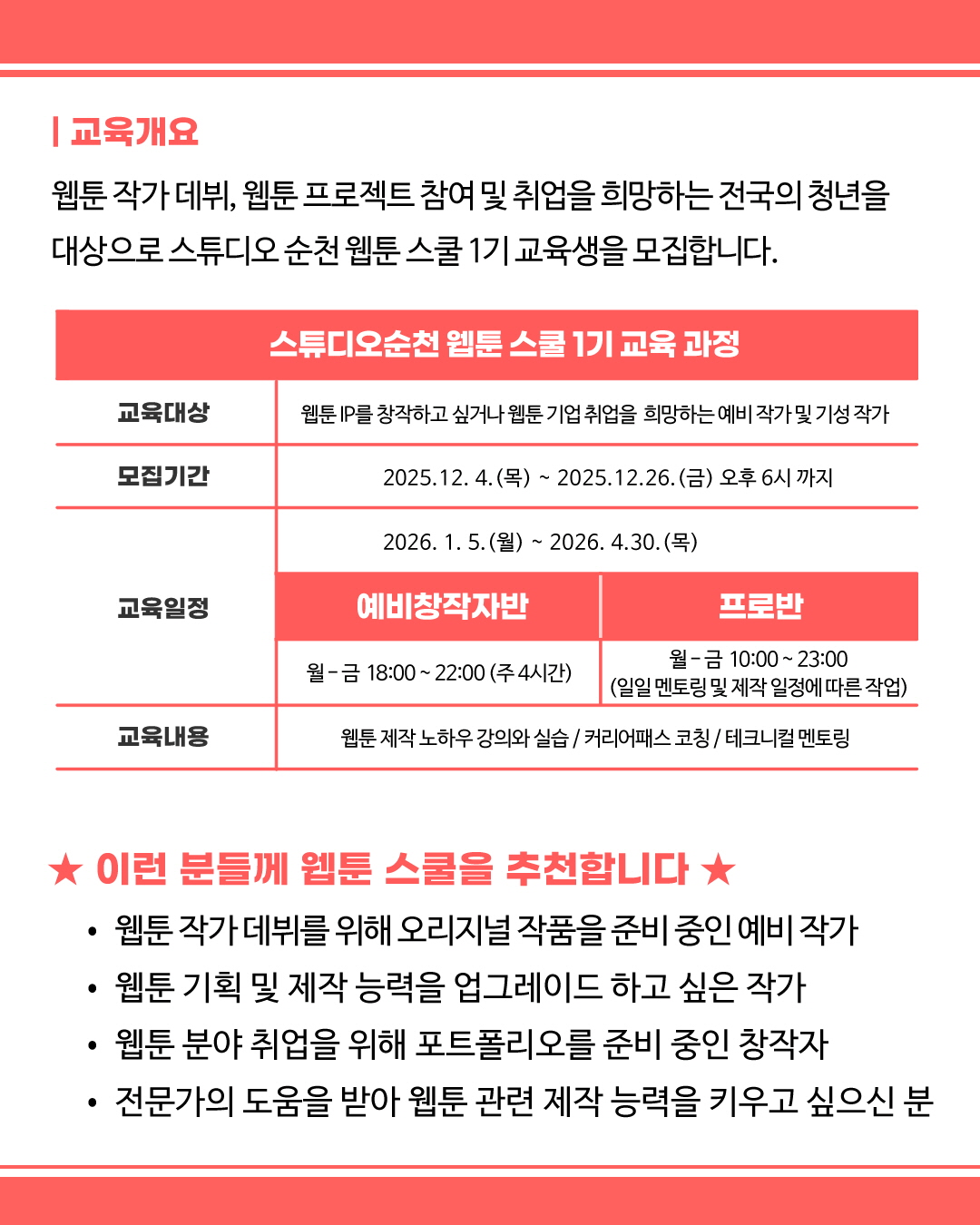 🎓 스튜디오 순천 웹툰 스쿨 교육 개요