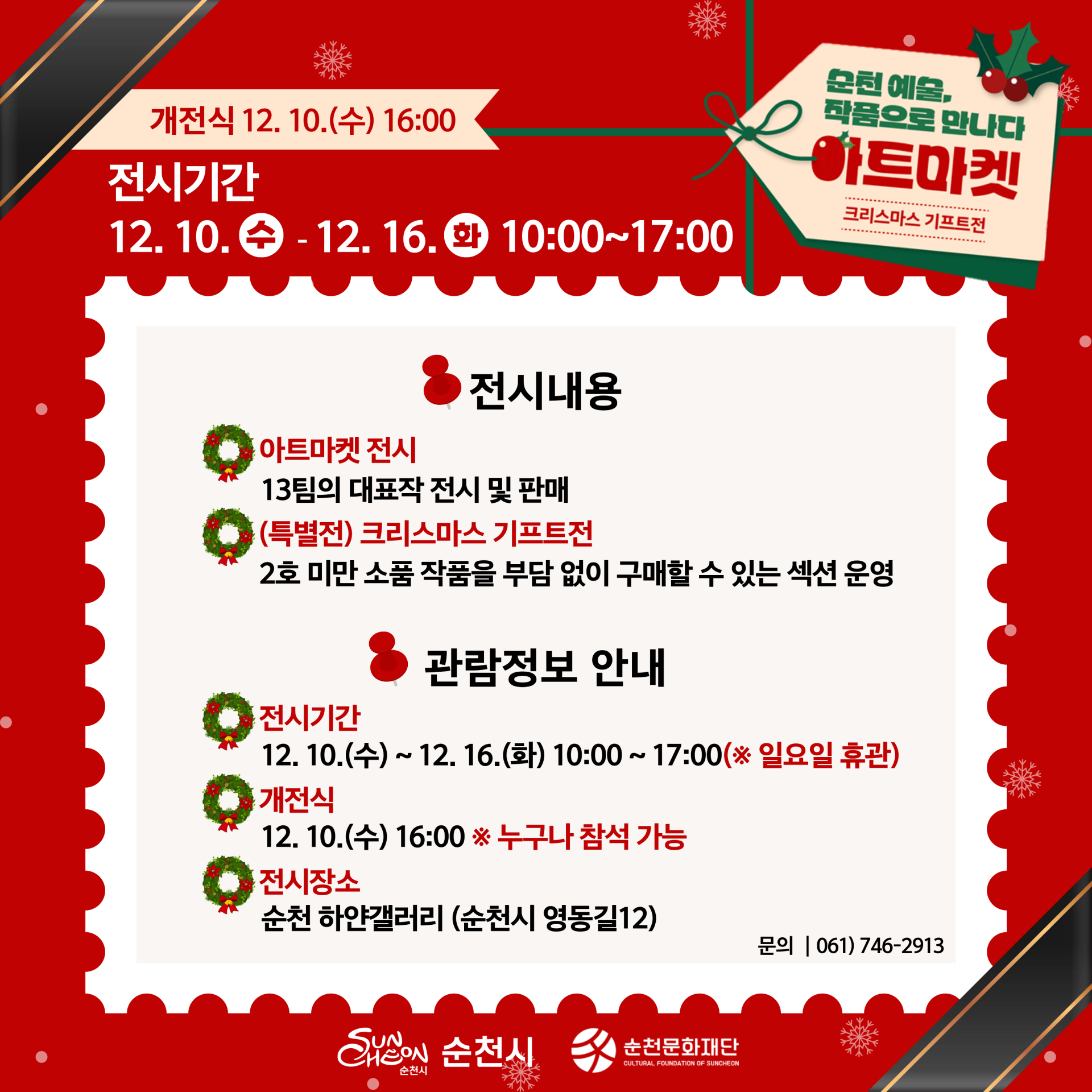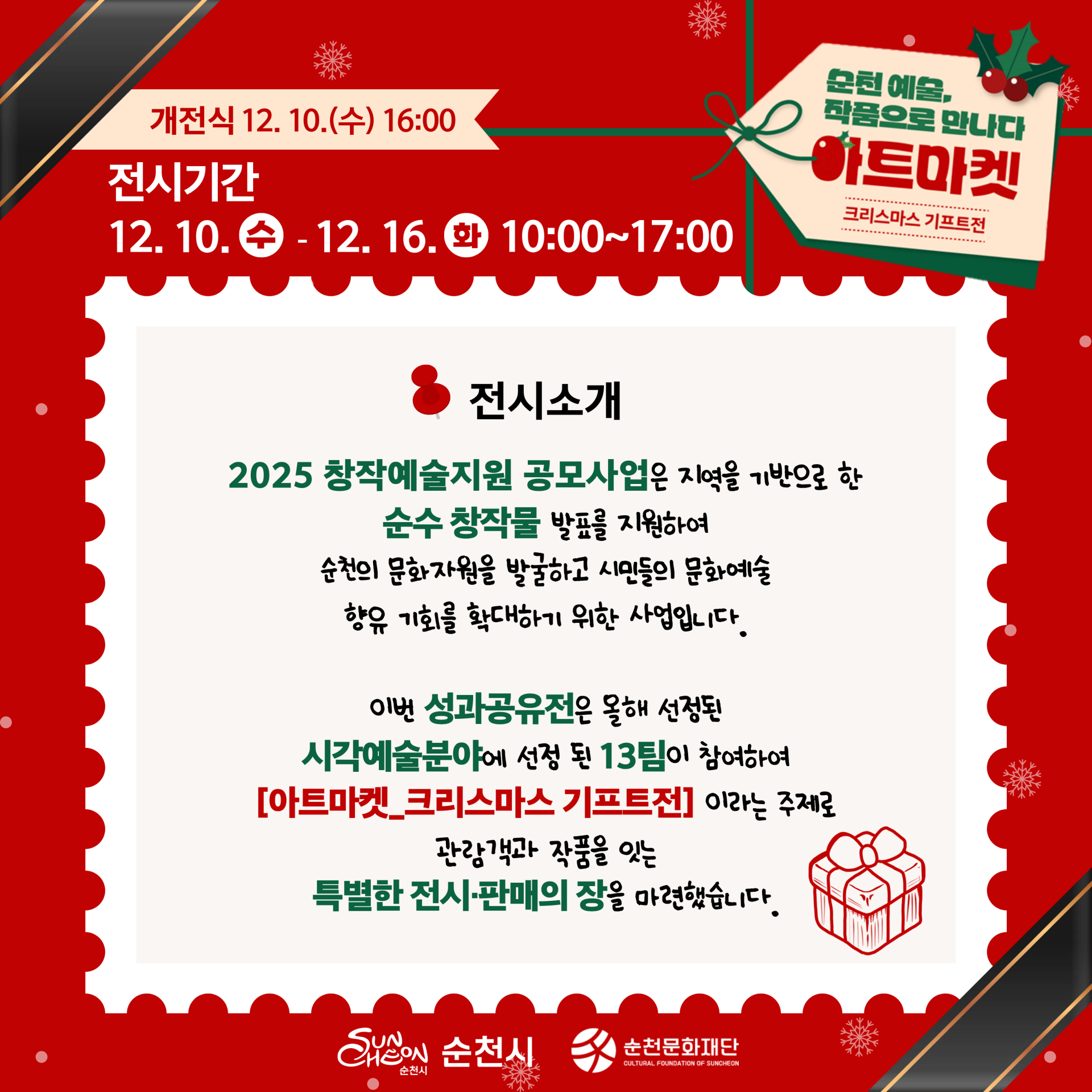 ❤️기간 : 2025. 12. 10.(수)~12. 16.(화) 10:00~17:00 ※ 일요일 휴관