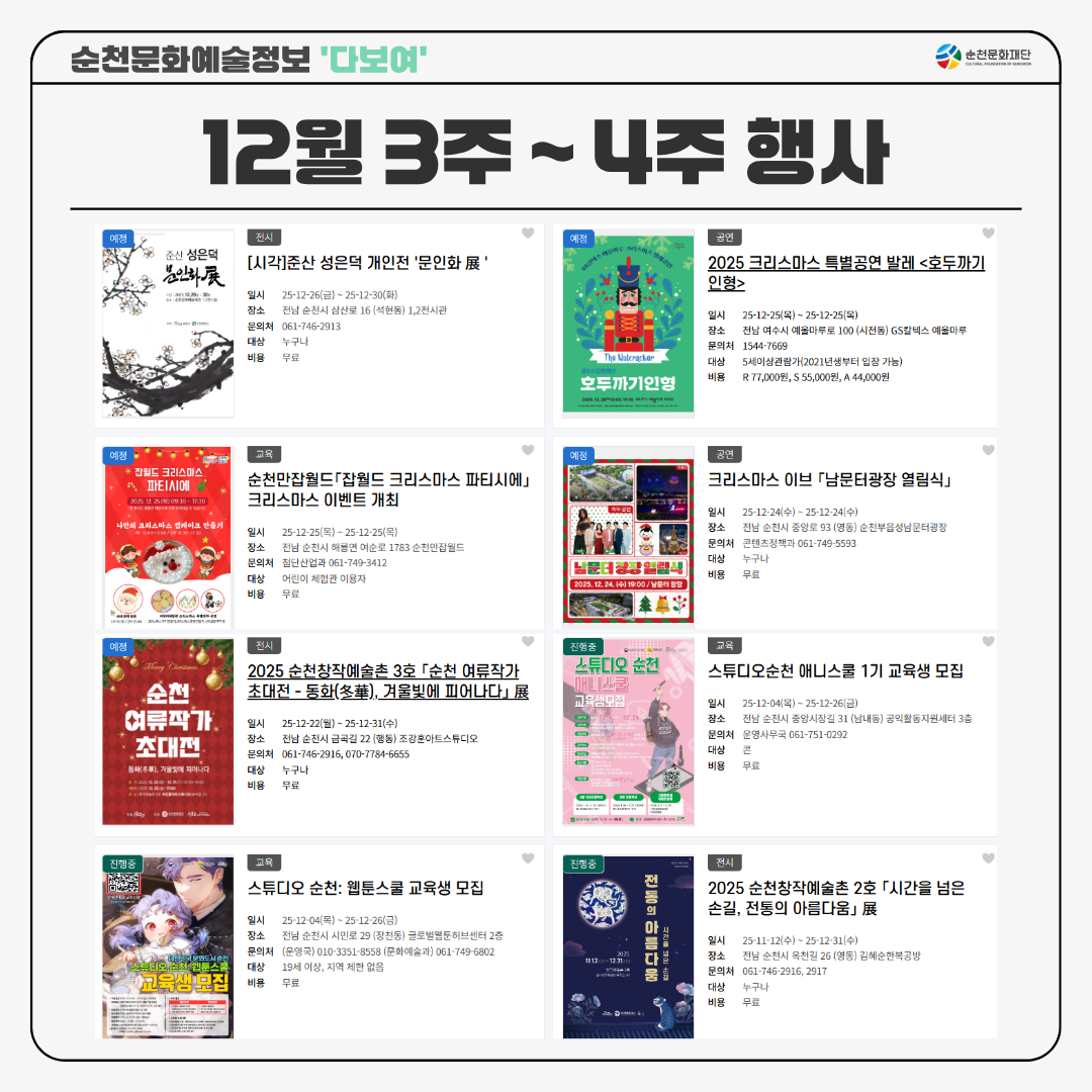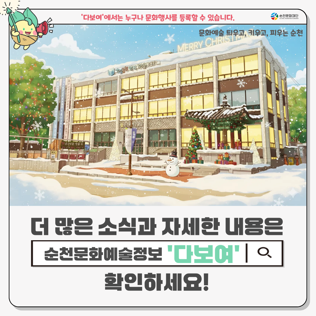 #순천문화재단 #문화예술정보 #순천문화예술 #다보여 #12월3주4주행사 #순천행사안내 #순천크리스마스 #순천공연 #순천전시 #순천가볼만한곳