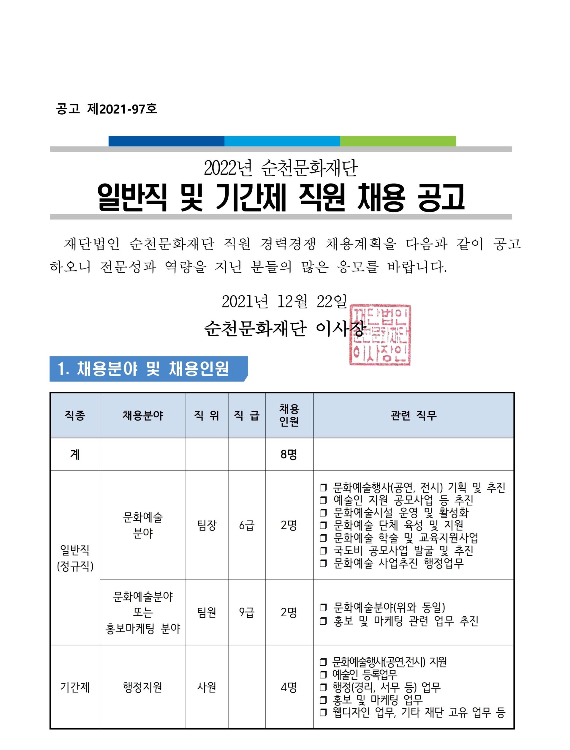 순천문화재단 일반직 및 기간제 직원 채용 공고(2021.12.22.).hwp